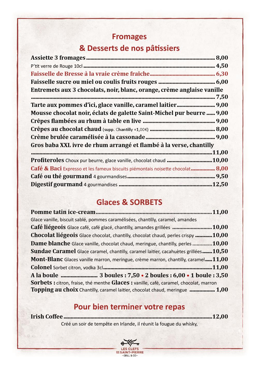 LA CARTE Prix nets en euros. Taxes et service compris. L’établissement n’accepte plus les règlements par chèques. L’abus d’alcool est dangereux pour la santé. A consommer avec modération